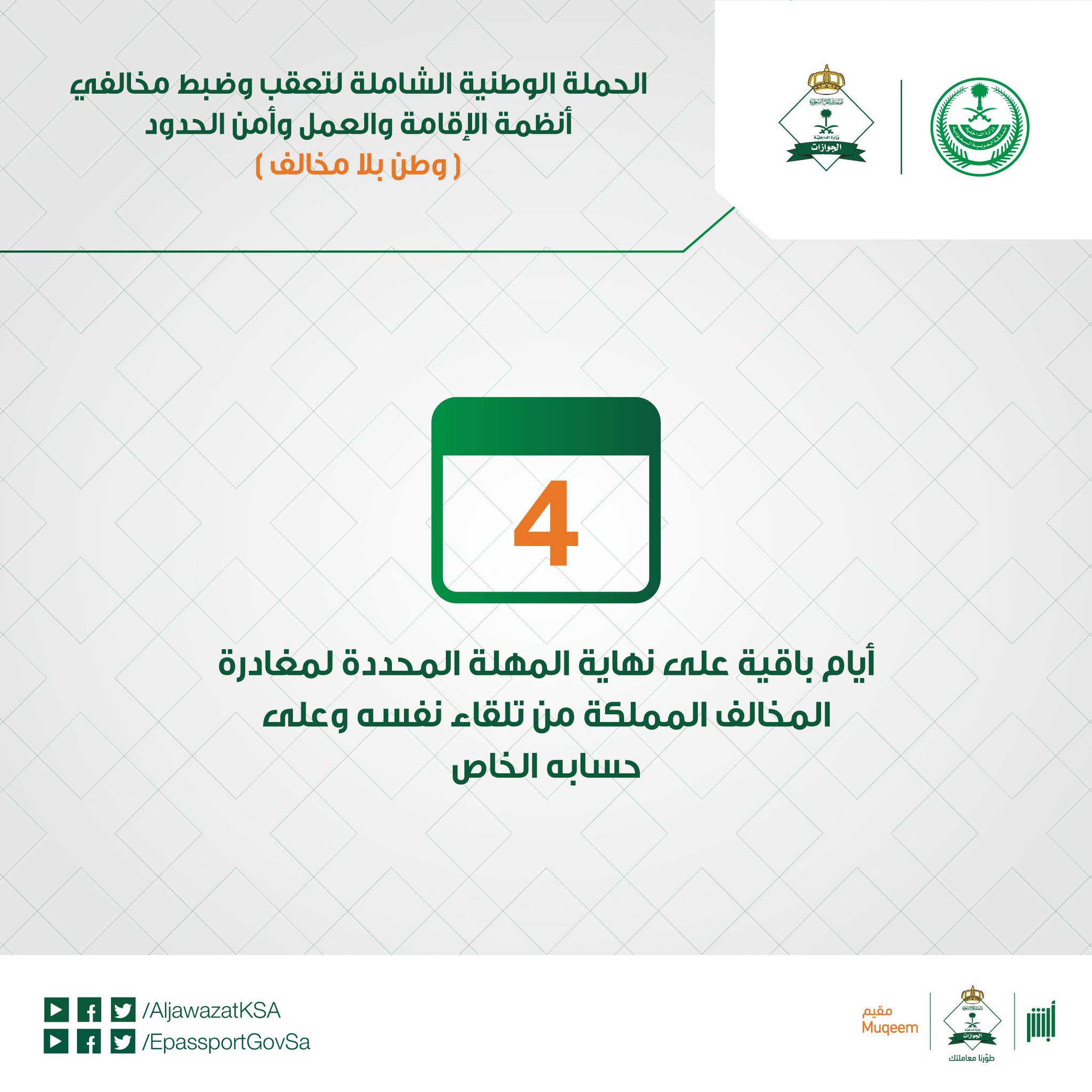 الجوازات السعودية Twitterren للاستفادة من المهلة يجب على المخالف المغادرة فور حصوله على تأشيرة الخروج النهائي لتجنب إعادة تطبيق العقوبات وطن بلا مخالف Https T Co Kqaqmxyxsn