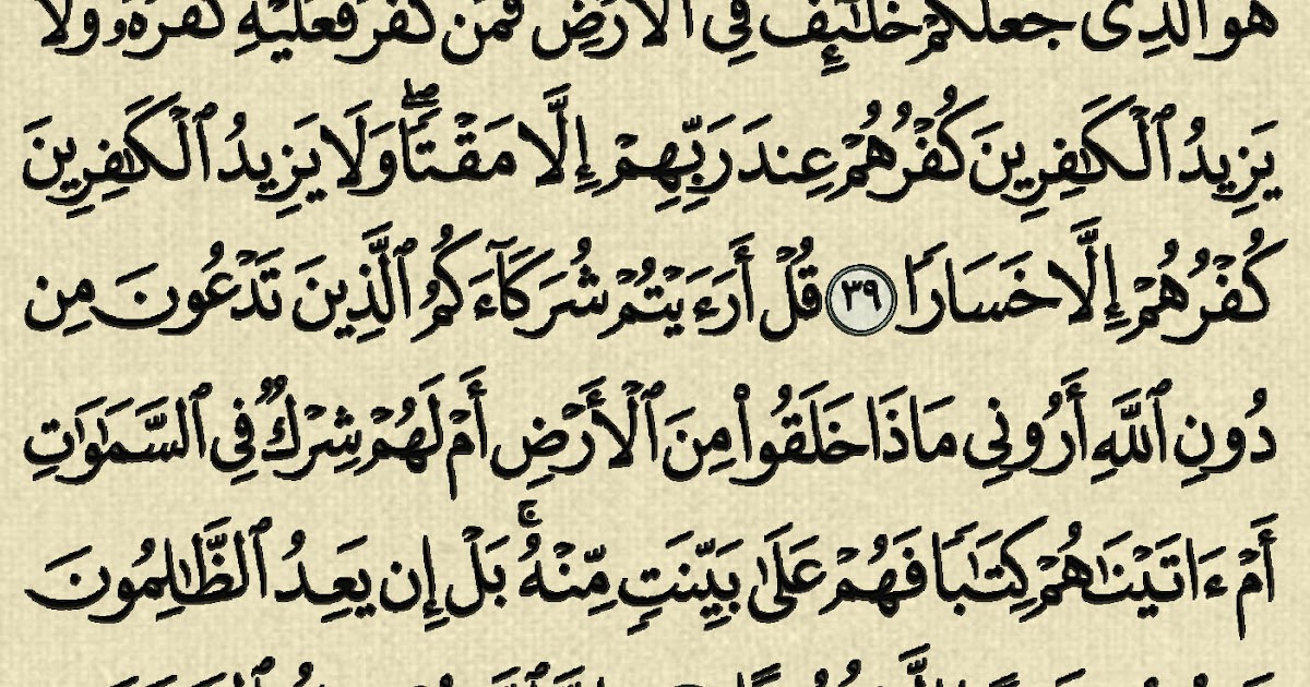 شرح وتفسير سورة فاطر Surah Fatir من الآية 39 إلى الآية 45 معاني الأسماء ومعاني الكلمات وتفسير القرآن الكريم